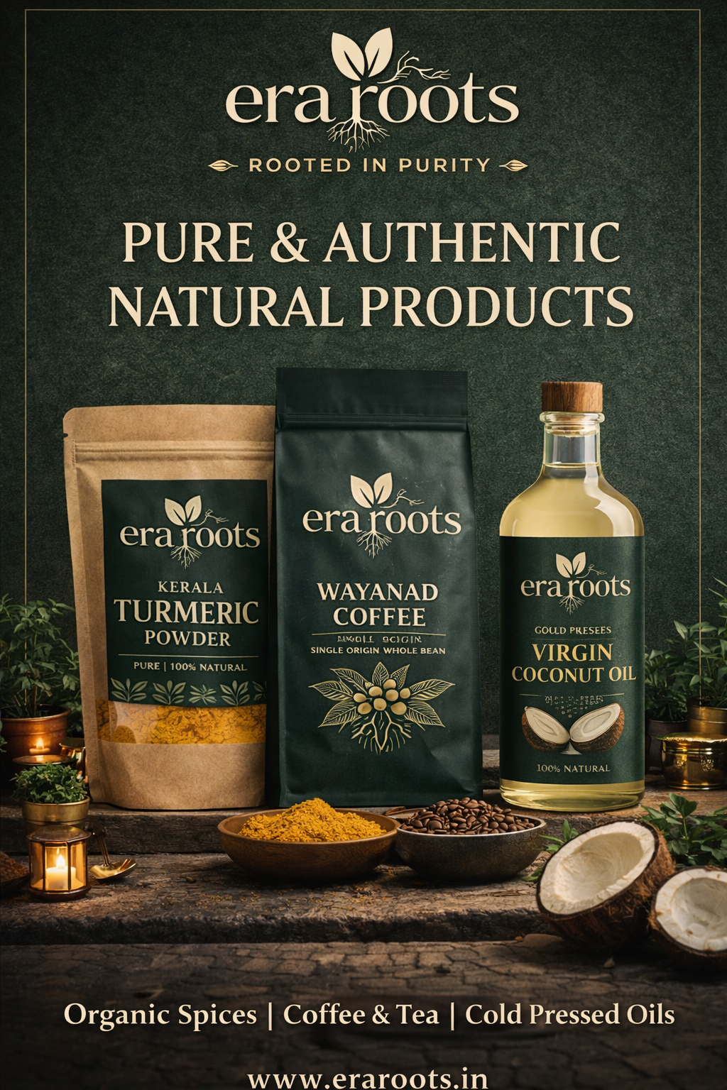 Era Roots was founded with a simple purpose — to bring pure, honest, and responsibly sourced food products from their place of origin to modern households. Our journey begins in the fertile landscapes of Wayanad, where generations of farmers cultivate spices and farm produce using traditional practices rooted in respect for nature and soil.
